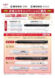 MONO消しゴムへの名入れキャンペーンのご案内です。